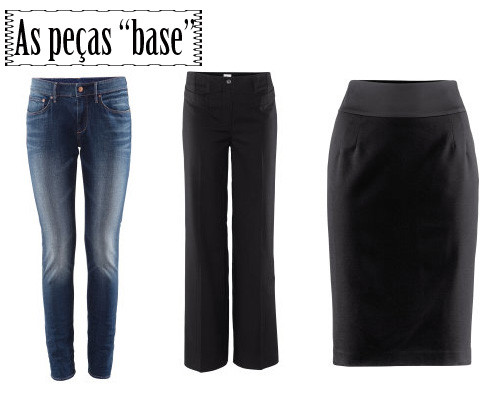 A pedido de algumas leitoras, aqui vos deixo três looks a pensar em jantares e festas de Natal. A base dos mesmos é comum: uns jeans, umas calças em tecido, pretas e uma saia-lápis preta - três peças-básicas que devemos ter no guarda-roupa.