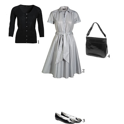 1. Casaco H&M. 2. Vestido H&M. 3. Sapatos Lanidor. 5. Carteira Lanidor.