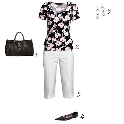 1. Carteira Massimo Dutti. 2. Blusa H&M. 3. Corsários H&M. 4. Sapatos Zara. 5. Brincos Accessorize.