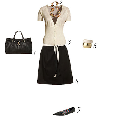 1. Carteira Massimo Dutti. 2. Colar H&M. 3. Casaco H&M. 4. Saia Massimo Dutti. 5. Sapatos Zara. 6. Pulseiras Massimo Dutti.
