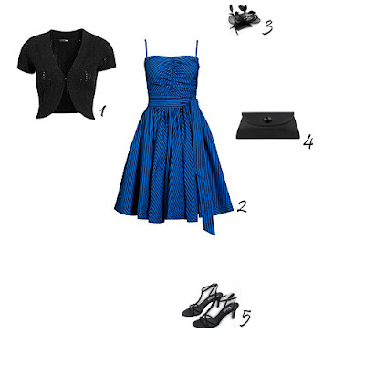 1. Casaco H&M. 2. Vestido H&M. 3. Acessório para o cabelo Accessorize. 4. Clutch Accessorize. 5. Sandálias Morgan.