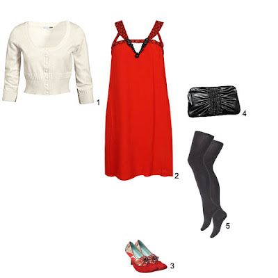 1. Cardigan H&M. 2. Vestido Forever21. 3. Sapatos Irregular Choice. 5. Clutch H&M. 6. Collants Accessorize.