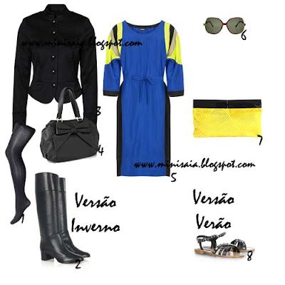 1. Collants Accessorize. 2. Botas Christian Louboutin. 3. Casaco H&M. 4. Carteira Accessorize. 5. Vestido DKNY. 6. Óculos de sol Jeepers Peepers Paris Sunglasses. 7. Clutch Reiss Issac. 8. Sandálias Vanessa Bruno Athé.