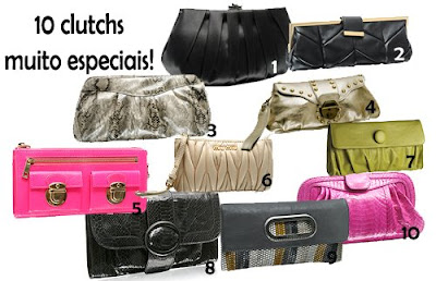 1. Clutch Oasis, à venda em ASOS.com. 2. Clutch Miu Miu, à venda em ASOS.com. 3. Clutch à venda em ASOS.com. 4. Clutch à venda em ASOS.com. 5. Clutch Marc Jacobs, à venda em ASOS.com. 6. Clutch Miu Miu, à venda em ASOS.com. 7. Clutch H&M. 8. Clutch Oasis, à venda em ASOS.com. 9. Clutch Fiorelli 'Fairlady', à venda em ASOS.com. 10. Clutch Angel Jackson, à venda em ASOS.com.