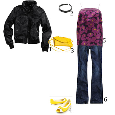- O top, às flores, conjuga, na perfeição, o lilás e o amarelo! Os jeans aqui apresentados, poderão ser substituídos por uns skinny, em ganga escura, para dar um ar mais sofisticado!