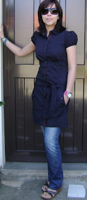 Vestido Mango. Jeans Salsa. Sandálias Status. Óculos de sol Mango. Acessórios (relógio e pulseiras) Parfois.