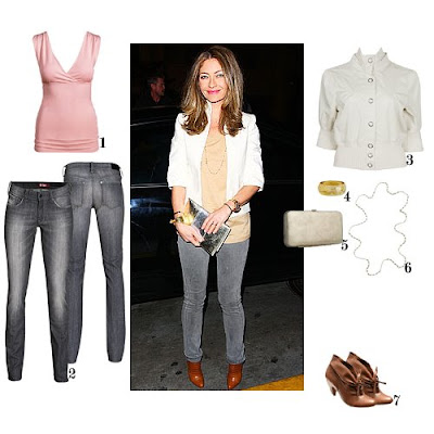 1. Top H&M. 2. Jeans H&M. 3. Casaco Forever21. 4. Pulseira H&M. 5. Clutch Accessorize. 6. Colar Accessorize. 7. Botins ASOS.
