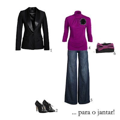 1. Casaco H&M. 2. Botins Carvela, à venda em ASOS.com. 3. Camisola H&M. 4. Jeans H&M. 6. Clutch Lipsy, à venda em ASOS.com.