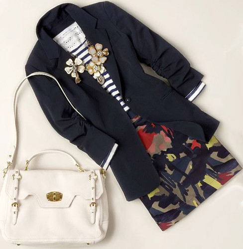 Padrões florais mais gráficos com riscas navy. Uma mistura aparentemente improvável para algumas mulheres mas que, na minha opinião, resulta muito bem.